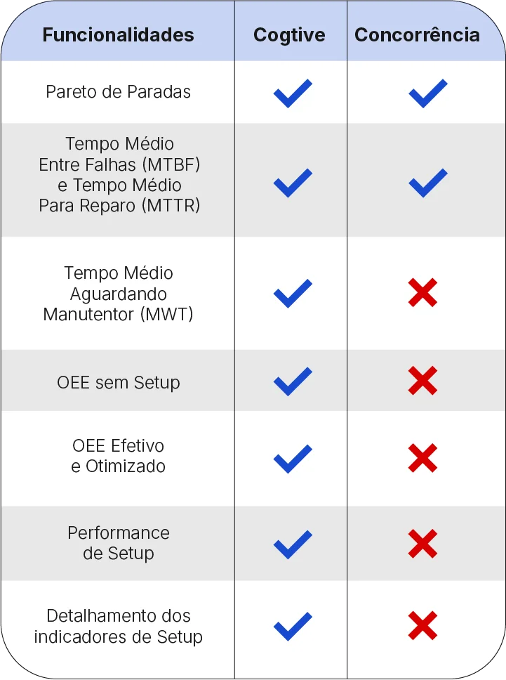 A Cogtive entrega a certeza do que exatamente está acontecendo lá no chão de fábrica. Saiba a real performance do seu equipamento, entenda os principais motivos de parada que impactam na produção e atue na sua gestão com foco na disponibilidade da máquina.
